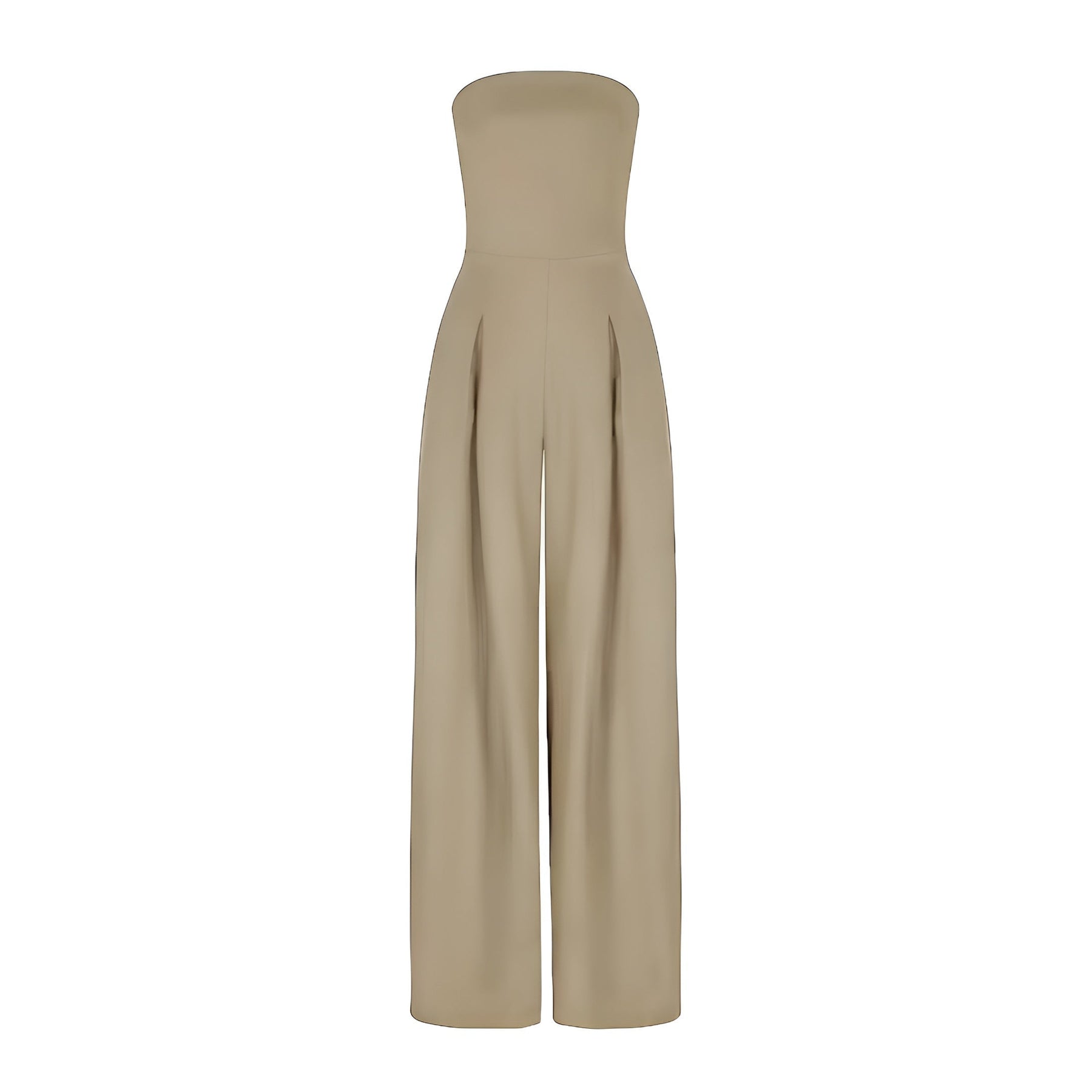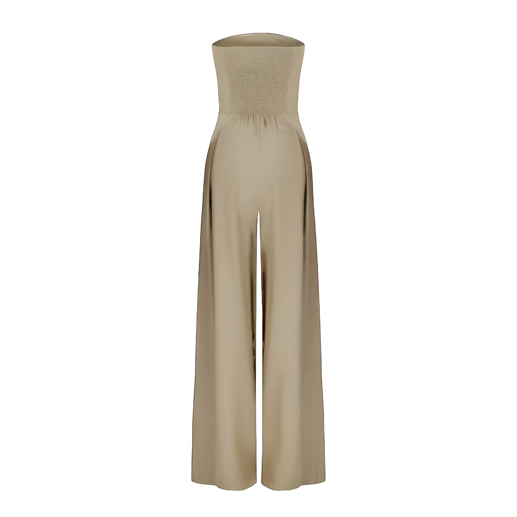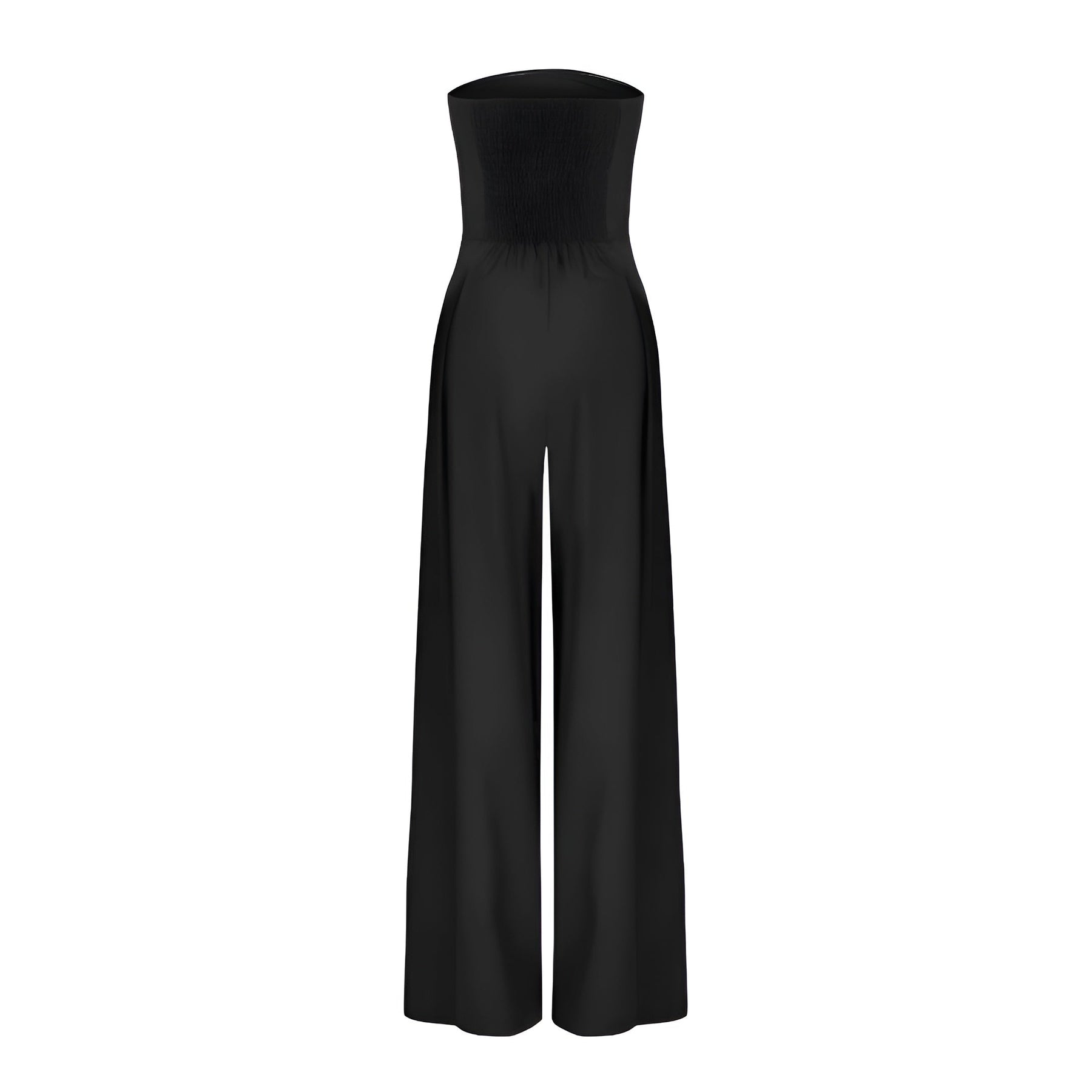 The Celine jumpsuit defines contemporary sophistication with its strapless neckline and flowing wide-leg silhouette. Designed for confidence and comfort, it moves gracefully while maintaining a structured, polished look that transitions seamlessly from day to night.