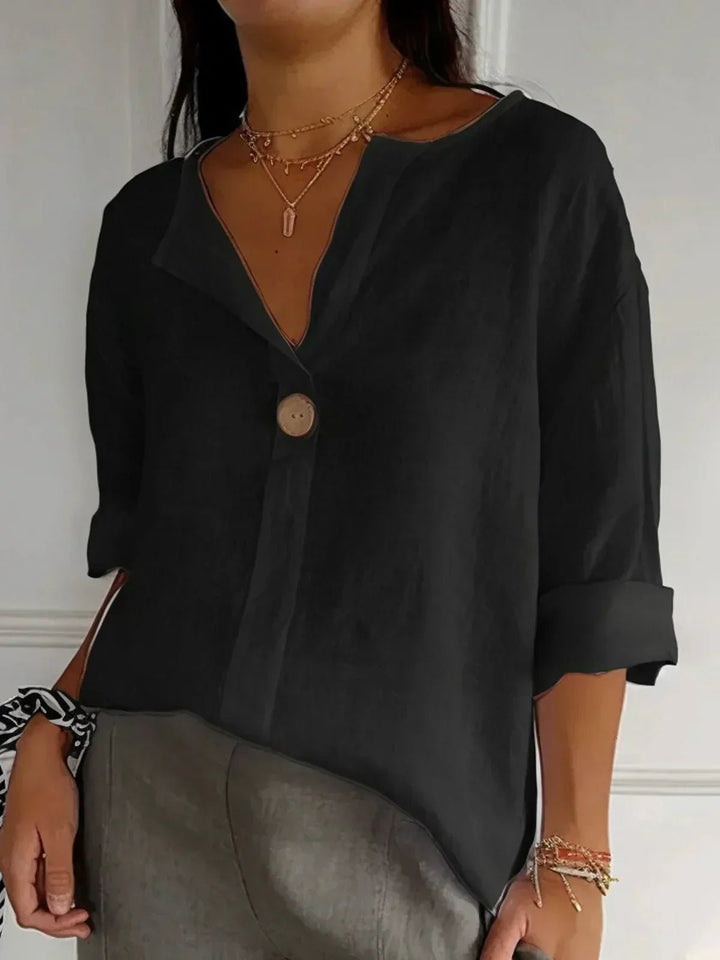 Elowen | Linen V - Neck Casual Blouse - AUS - 0189 - MOOD Melbourne