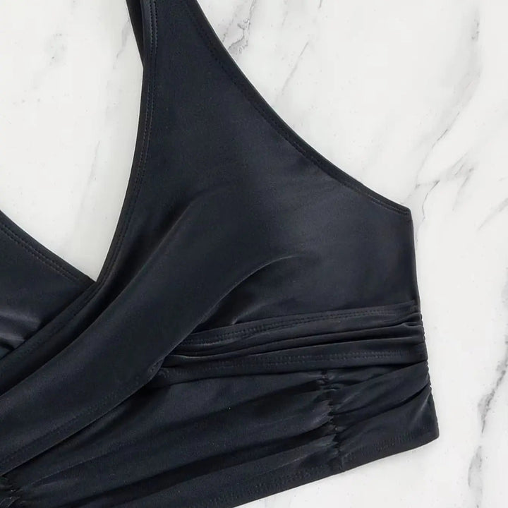 “This bikini is exactly what I’ve been looking for! The crossed chest design gave my bust a lovely shape, and the high-waist bottoms made me feel confident in my waistline. It's so comfortable, I didn't want to take it off. Plus, it’s versatile enough to wear for any occasion at the beach!”