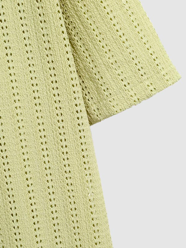 Men's solid color seersucker texture hollow lapel short-sleeved shirt